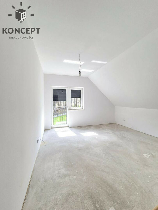I piętro zajmują 4 pokoje, przedpokój, łazienka (do wykończenia).