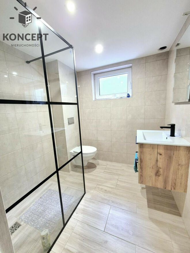W piwnicy znajduje się duży garaż, pralnia, pomieszczenie gospodarcze, łazienka z wc, kotłownia.